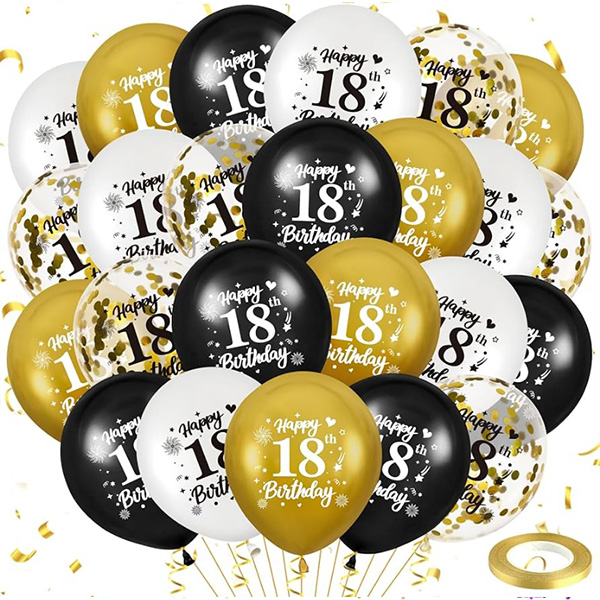 18번째 생일 풍선 세트:당사 공장에서 출시된 18번째 생일 풍선 세트에는 호일 풍선, 라텍스 풍선, 생일 깃발, 생일 카드, 리본 및 기타 액세서리가 포함됩니다. 블랙 골드, 그린 골드, 로즈 골드, 블루 골드 등 선택할 수 있는 다양한 색상이 있습니다. 이러한 색상은 고급스럽고 우아하여 파티 전체를 더욱 정교하게 만들고 생일 축하의 느낌을 더해줍니다. 게다가, 이 패키지는 매우 비용 효율적이어서 저렴한 가격으로 잊을 수 없는 18번째 생일 파티를 만들 수 있습니다.