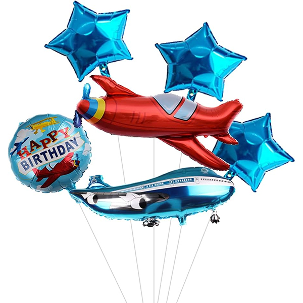 비행기 호일 풍선 작은 세트:이 비행기 호일 풍선 작은 세트는 6개의 호일 풍선, 비행기 호일 풍선, 별 호일 풍선, 구름 호일 풍선 및 숫자 호일 풍선 등으로 구성됩니다. 이 풍선은 펑크에 저항하고 모양을 유지할 수 있는 고품질 알루미늄 호일로 만들어져 파티에 오래 지속되는 장식 효과를 보장합니다. 일치하는 세트를 선택하거나 요구 사항에 따라 세트를 맞춤 설정할 수 있습니다. 이 패키지는 공기 또는 헬륨으로 빠르게 팽창하도록 설계되었습니다. 글루닷과 리본이 포함되어 있어 설치 과정이 간단하고 부담이 없습니다. 비행기 모양의 풍선은 즐겁고 활기찬 분위기를 연출합니다. 각종 파티 및 어린이 생일 파티에 적합합니다.