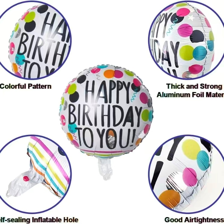 좋은 품질의 포일로 만들어졌어요. 그들은 강력한 밀봉을 가지고 있습니다. 가볍고 고급스러운 느낌을 줍니다. 표면은 좋은 인쇄 기술을 사용합니다. 패턴이 선명하고 밝습니다. 색상이 선명하고 쉽게 퇴색되지 않습니다. 클래식한 텍스트 디자인을 얻을 수 있습니다. 여기에는 중국어와 영어로 된 "생일 축하합니다"가 포함됩니다. 만화 캐릭터와 연령 번호가 포함된 스타일도 많이 있습니다. 다양한 연령대의 생일 이벤트에 적합합니다. 이는 어린이부터 성인까지 모두 포함됩니다.