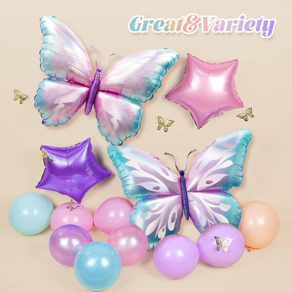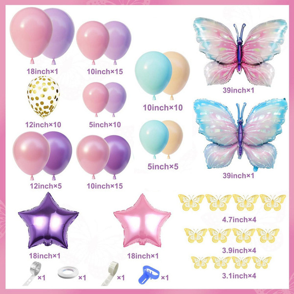 나비 스타일은 수년 동안 매우 인기가 있었습니다. 낭만과 자유를 상징합니다. 어른도 아이도 나비 스타일에 매료됩니다. 많은 사람들이 생일 파티에 이 나비 풍선 화환 키트를 사용하기를 원합니다. 게다가 결혼식, 공휴일, 베이비 샤워 및 기념일에도 사용할 수 있습니다.