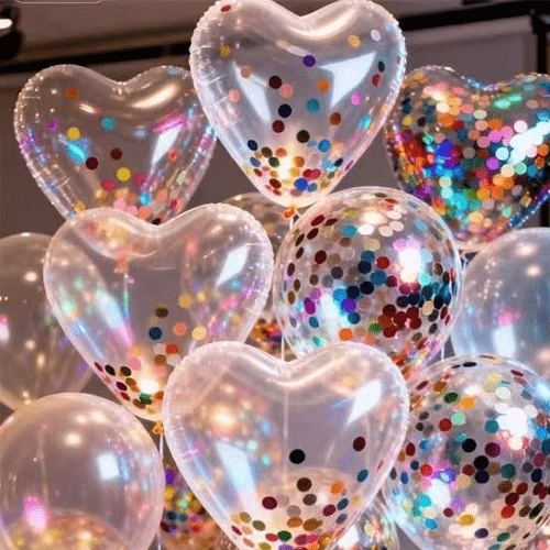 색종이 풍선 세트는 두꺼운 라텍스 소재로 제작되어 견고하고 내구성이 뛰어납니다. 라텍스 풍선에는 고광택 메탈릭 색종이가 채워져 움직일 때 반짝반짝 빛나고, 정지 상태에서는 색종이가 풍선 벽에 고르게 접착되어 세련된 분위기를 연출합니다.