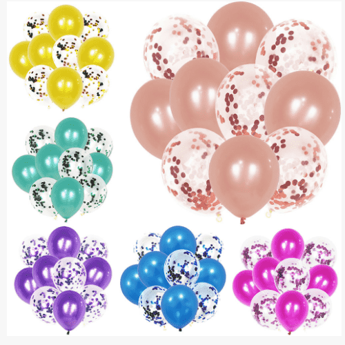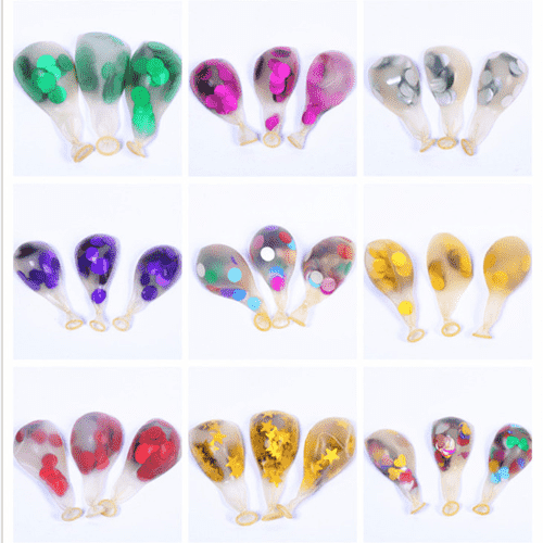 색종이 풍선은 보통 12인치 투명 라텍스 풍선을 사용합니다. 각 풍선에는 1g의 색종이가 들어 있으며 각 패키지에는 100개를 담을 수 있습니다. 이 크기의 색종이 풍선은 작은 풍선 슈트나 풍선 화환 키트에 자주 사용되며 더 나은 결과를 제공합니다.
