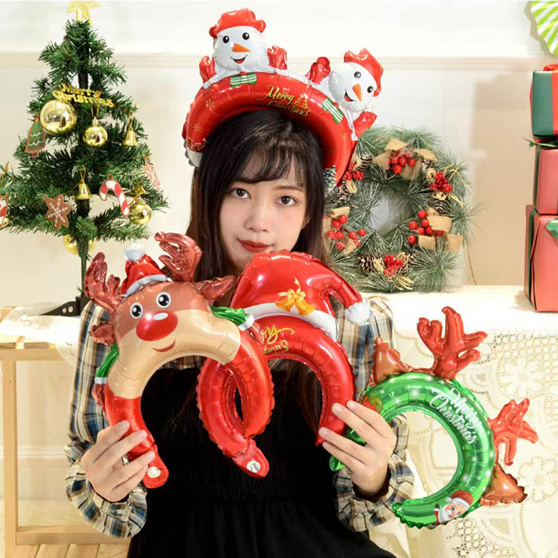 크리스마스 포일로 덮인 머리띠에는 크리스마스 트리, 산타, 순록이 그려진 축제 분위기의 옛 디자인이 있습니다. 레드와 그린 컬러 패턴이 계절의 즐거움을 압도합니다. 공기가 가득 차면 마치 미니 크리스마스 장식처럼 보이기도 하며, 크리스마스 파티나 쇼핑몰에서 명절 분위기를 전파하는 데 탁월합니다.