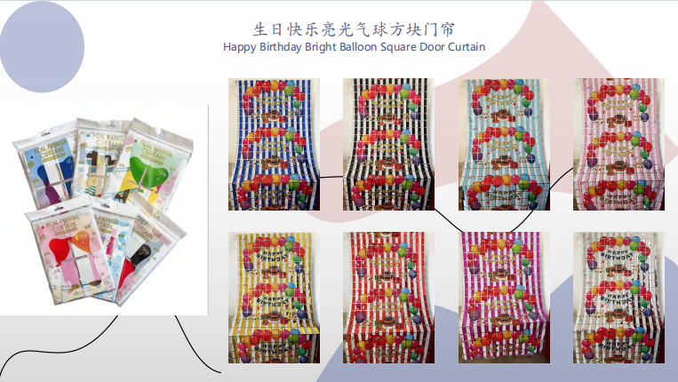 National Day와 같은 애국적인 활동에 사용할 수있는 국기 색상의 주제를 가진 포일 커튼과 같은; 레이싱 테마에 적합한 레이싱 테마가있는 흑백 포일 커튼도 있습니다.