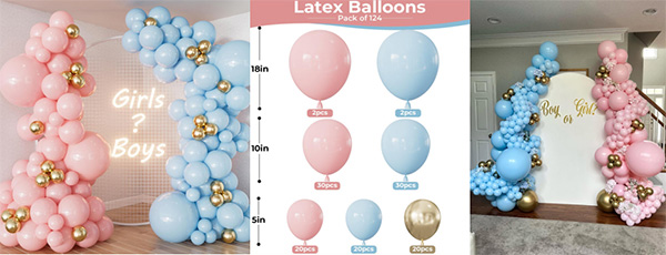 A: 성별 공개 풍선 아치 키트는 매력적인 핑크색과 파란색 설정으로 아기를 환영하는 마법 같은 순간을 포착하는 데 도움이 되며 성별 공개 파티, 베이비 샤워, 신부 샤워, 공주 테마 장식 또는 출산 사진 촬영에 적합합니다. 이 분홍색 및 파란색 풍선 키트는 결혼식, 약혼식, 기념일, 소녀 또는 소년 생일 파티 및 기타 축하 행사에도 아름답게 어울립니다.