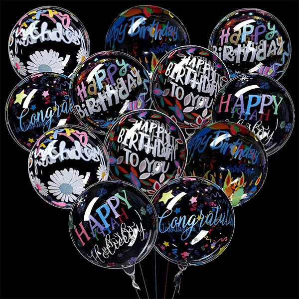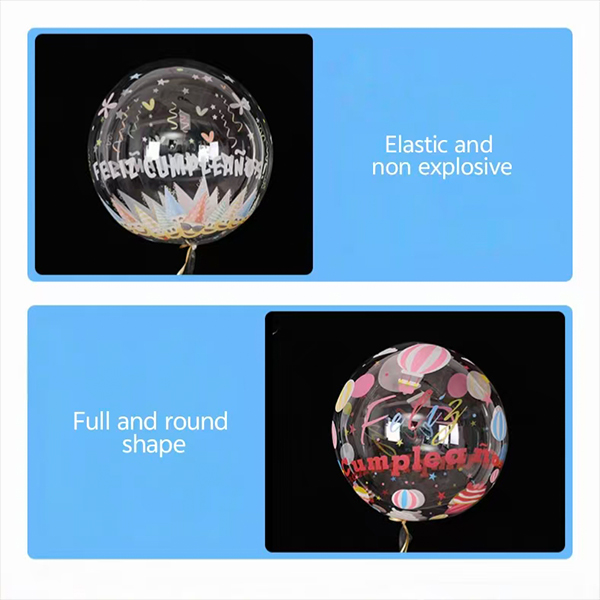 인쇄 된 생일 축하해 보보 풍선에는“생일 축하합니다”라는 단어와 풍선 표면에 일부 디자인이 인쇄되었습니다. 인쇄는 명확하고 밝습니다. 색상이 사라지지 않습니다. 디자인의 주요 특징은 원피스 형태입니다. 단어와 디자인은 풍선의 일부입니다. 모양은 더 훌륭하고 전문적입니다. 인쇄 된 유형에는 많은 색상과 많은 패턴이 제공됩니다. 이들은 별, 왕관, 노트 및 기타 모양입니다. 그들은 투명한 풍선 표면에 깊이와 층을 보여줍니다. 풍선은 더 높고 우아하게 보입니다. 훌륭한 파티 장식에 좋습니다.