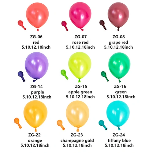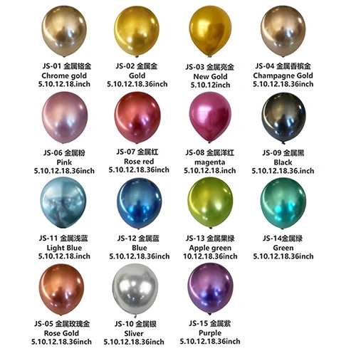 금속 풍선:고광택 거울 마감과 눈길을 끄는 질감과 색상을 갖춘 이 풍선은 파티 장식, 맞춤형 인쇄 등에 사용할 수 있는 가장 다재다능한 라텍스 풍선입니다.