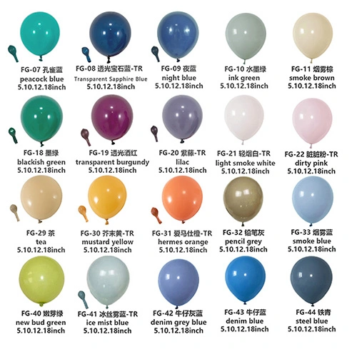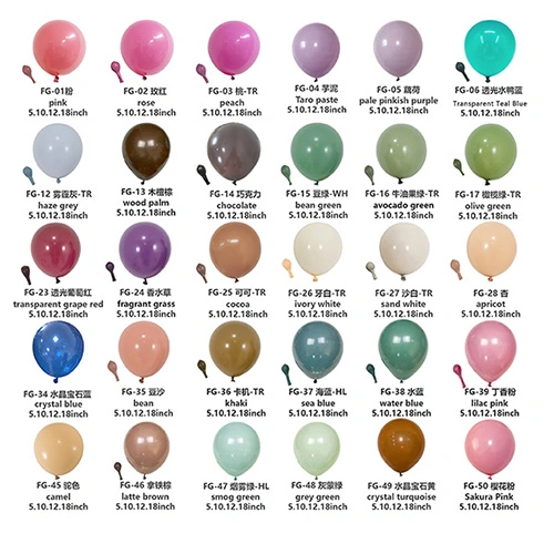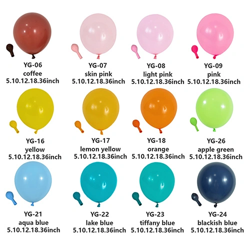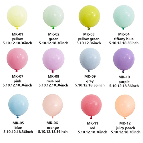 당사의 라텍스 풍선은 일반적으로 5인치, 10인치, 12인치, 18인치 및 36인치로 생산됩니다. 특별한 요구 사항이 있거나 풍선을 맞춤 제작해야 하는 경우 다른 크기로 생산할 수도 있습니다.