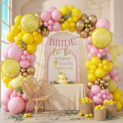 상큼하고 힐링이 되는 레몬 요소를 중심으로 한 레몬 벌룬 가랜드는 풍부한 풍선 조합과 어우러져 풍성한 분위기를 연출하며 모든 종류의 인기 파티 장면에 적합합니다.