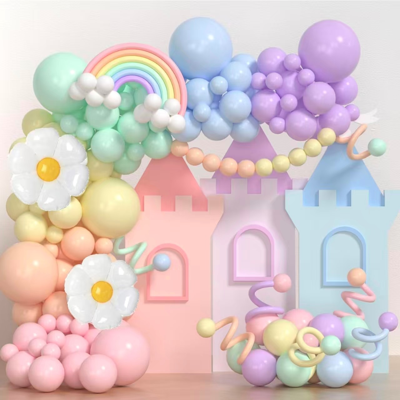 마카롱 컬러 풍선 화환 아치는 부드럽고 꿈꾸는 색으로 인기가 있습니다. 전체 세트는 12 개의 부드러운 마카롱 색상에 중점을 둡니다. 마카롱 레드, 마카롱 블루, 마카롱 보라색 및 기타 색상이 있습니다. 각 색상은 신선하고 낭만적 인 모습을 가져옵니다.
