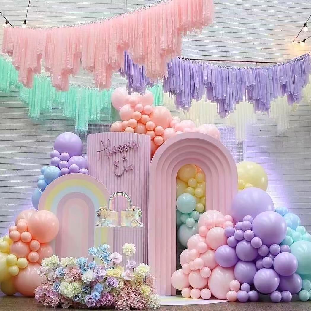 개인 파티나 대규모 행사의 경우 마카롱 풍선 화환 아치가 레이어와 예술적인 느낌을 더할 수 있습니다. 그들은 축하 행사를 더욱 특별하고 기억에 남게 만듭니다.