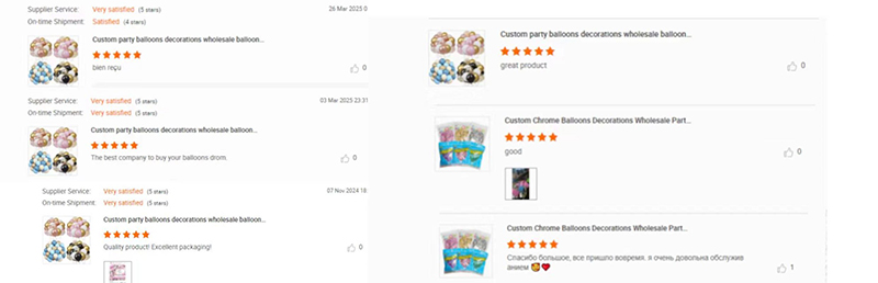 12인치 메탈 컬러 풍선 소형 세트는 두 가지 옵션으로 제공됩니다. 12개들이 컴팩트 팩이나 30개들이 대형 팩을 선택할 수 있습니다. 12개들이 팩은 소규모 파티에 적합합니다. 테이블 장식과 선물 페어링에도 잘 맞습니다. 좋은 가치와 실용성을 모두 제공합니다. 30개들이 팩은 더 큰 요구 사항에 적합합니다. 벽 장식과 풍선 아치 건물에 이상적입니다. 실제 구매 시나리오에 따라 올바른 것을 선택할 수 있습니다. 우리는 10년 이상의 판매 경험을 가지고 있습니다. 12개 팩에는 더 많은 적용 가능한 시나리오가 있습니다. 고객들에게 더욱 인기가 높습니다.
