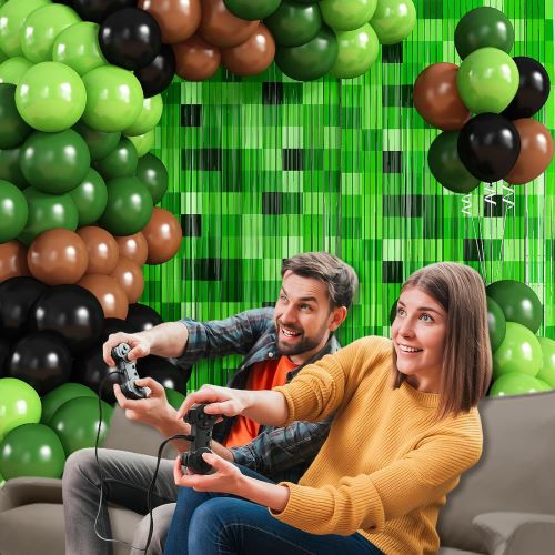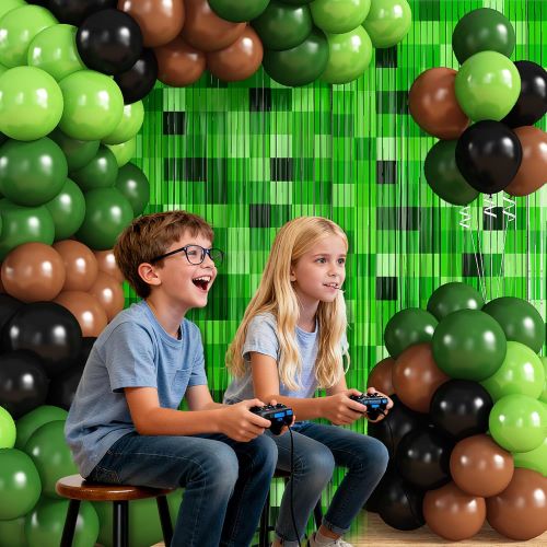마인크래프트 비디오 게임에서 영감을 받은 이 내구성이 뛰어난 마인크래프트 풍선 아치 키트는 녹색 픽셀 풍선의 다양한 색조와 마인크래프트 테마 파티 배경을 결합하여 클래식 어드벤처 게임의 매력을 포착하는 재미있는 레이어드 룩을 연출합니다.