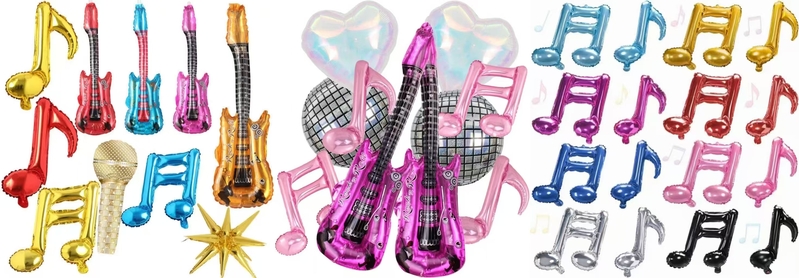 음악 호일 풍선 작은 세트:10-20개의 음악 스타일 호일 풍선과 라텍스 풍선을 사용하여 작은 세트를 만드세요. 공기나 헬륨으로 채워질 수 있습니다. 매력이 강하기 때문에 길거리에서 판매하는 것이 매우 적합할 것입니다.