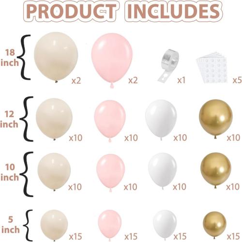 가장 인기있는 것 중 하나로풍선 아치 키트시장에서는 고객 10명 중 약 8명이 이 스타일을 선택합니다. 우리의 고품질 핑크 베이지 화이트 풍선은 결혼식 파티, 생일 파티, 베이비 샤워, 성별 공개 파티 등에 매우 적합하기 때문에 고객들에게 사랑을 받고 있습니다.