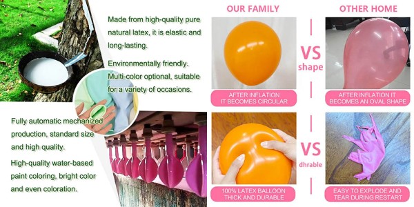 더 강한 질감: 고품질의 원료와 첨단 기술을 사용하여 하나하나의 라텍스 풍선은 매우 강한 질감과 풍부한 색상을 가지고 있습니다.