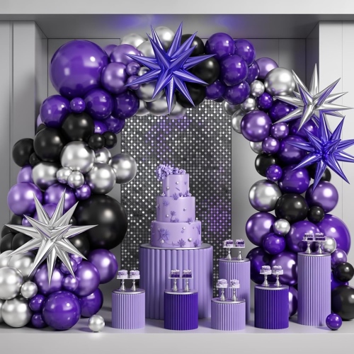 고품질의 보라색 및 검정색 풍선 화환 키트를 사용하면 검정색과 보라색 풍선을 믹스 앤 매치할 수 있습니다. 검정색과 보라색 풍선을 은색 풍선 또는 은박 풍선과 결합하여 풍선 화환 아치 키트를 강조할 수 있습니다. 졸업식, 성인식, 기타 이정표 축하 행사에 이상적이며, 젊음에 작별을 고하고 성인이 되는 의식적인 느낌을 구현합니다. 검정색과 보라색 풍선을 금색 풍선이나 금박 풍선과 결합할 수도 있습니다. 전문성과 세련미를 물씬 풍기며, 고급스럽고 평판 좋은 브랜드 이미지를 전달하기 때문에 기업 기념일, 신규 매장 오픈 등의 행사에 적합합니다. 파란색 풍선과 함께 사용하면 미래지향적인 룩을 연출할 수도 있습니다. 이 풍선 키트는 특히 전자 스포츠, 트렌디한 공상 과학 테마 파티에 적합하며 눈에 띄는 시각적 효과를 제공합니다.