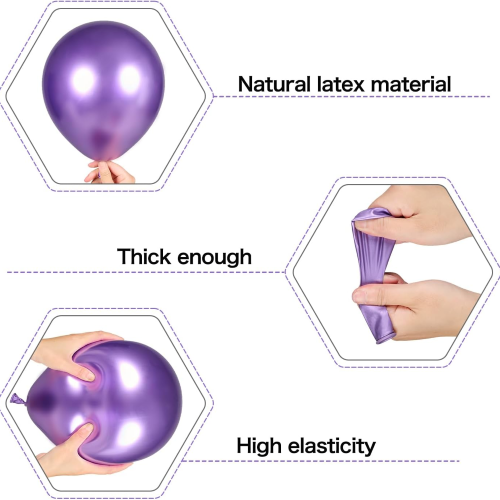 보라색 및 검정색 풍선 화환 키트의 수량과 무게는 다른 브랜드보다 많습니다. 각 풍선 화환 아치 키트에는 최소 100개의 풍선이 포함되어 있습니다. 우리가 제공하는 모든 풍선 크기는 표준 산업 그램 중량을 사용합니다. 예를 들어 12인치 풍선의 그램 무게는 2.8g입니다. 특별한 요구 사항이 있는 경우 풍선 그램 중량을 조정할 수도 있습니다. 아래 사진을 보시면 아시겠지만, 풍선세트 하나만 있어도 스타일리시하고 분위기 있는 파티 장면을 쉽게 연출할 수 있습니다.