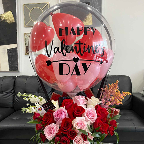 열기구 모양의 발렌타인데이 부케 보보풍선을 몸에 스티커로 붙여서 만들었습니다. 저희 공장에서 생산하는 풍선 충전 기계와 매칭하여 핑크 장미, 영원한 꽃다발 또는 사랑스러운 인형을 풍선에 넣고 선물 상자에 낭만과 놀라움을 담을 수 있습니다. 파트너를 위한 발렌타인 데이 깜짝 선물 또는 테이블 장식으로 이 발렌타인 데이 보보 풍선은 선물이자 분위기가 가득한 가정 장식입니다.